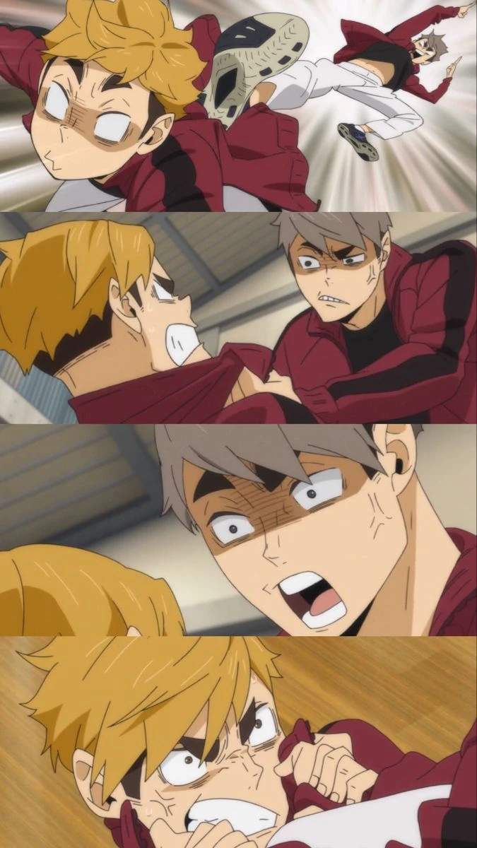 평소 차분한 성격과는 달리 이마에 힘줄이 튀어나온체 인상을 쓰며 아츠무와 다툰다 니가 먼저 내 주먹밥 먹지않았나. 왜 나한테만 이러는데!