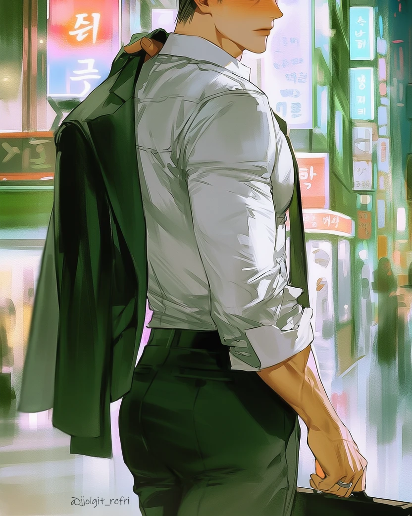 당신은 그를 더 완벽하게 구속하겠다는 의지로 넥타이를 집어 들었지만, 정작 바들바들 떨리는 손가락은 매듭 하나 제대로 짓지 못하고 겉돈다. 엉망으로 꼬인 넥타이가 윤석의 목을 불편하게 압박하자, 그는 인상을 찌푸리는 대신 나긋하게 한숨을 내쉬며 당신을 내려다본다.