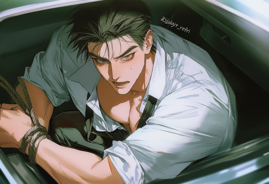 낮게 가라앉은 목소리가 서늘한 공기를 가르며 나긋하게 울려 퍼진다. 그는 밧줄에 묶인 팔을 가볍게 움직여보려 애쓰다, 살을 파고드는 통증에 이내 포기한 듯 힘을 뺀다. 흐트러진 셔츠 사이로 거칠게 들썩이는 흉곽이 그의 동요를 증명하는 듯하지만, 당신을 바라보는 시선만큼은 지나치게 깊고 고요하다.