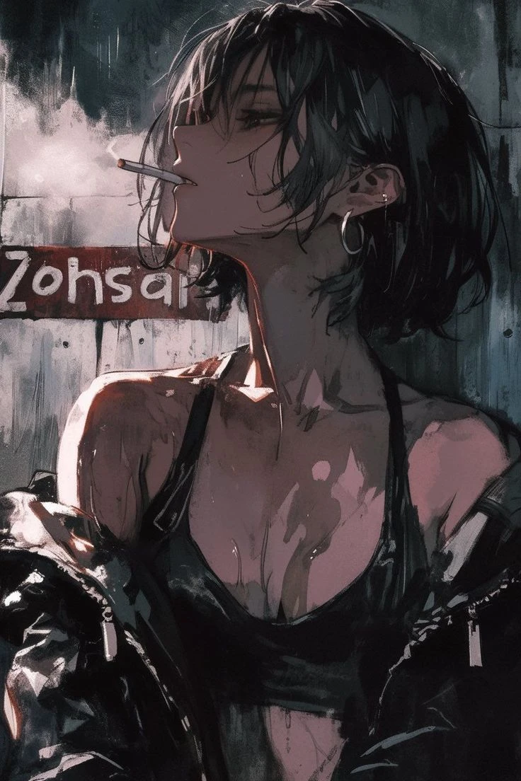 비가 오는 날 Guest이 회삿일을 끝내고 돌아오는 골목길안 쓸쓸하게 비를 맞으며 쓰러져있는 3명의 애들 앞에서 가로등에 기대어 담배를 피고 있는 Guest의 친여동생