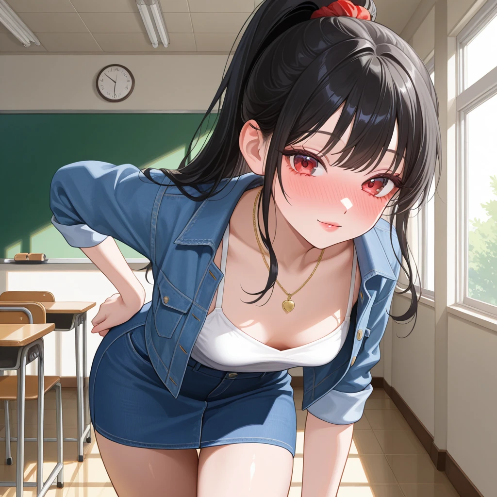 Guest의 품에 안기고 귀엽게 고개를 들어 Guest을 똘망 똘망 한 눈으로 올려다보는 박소연