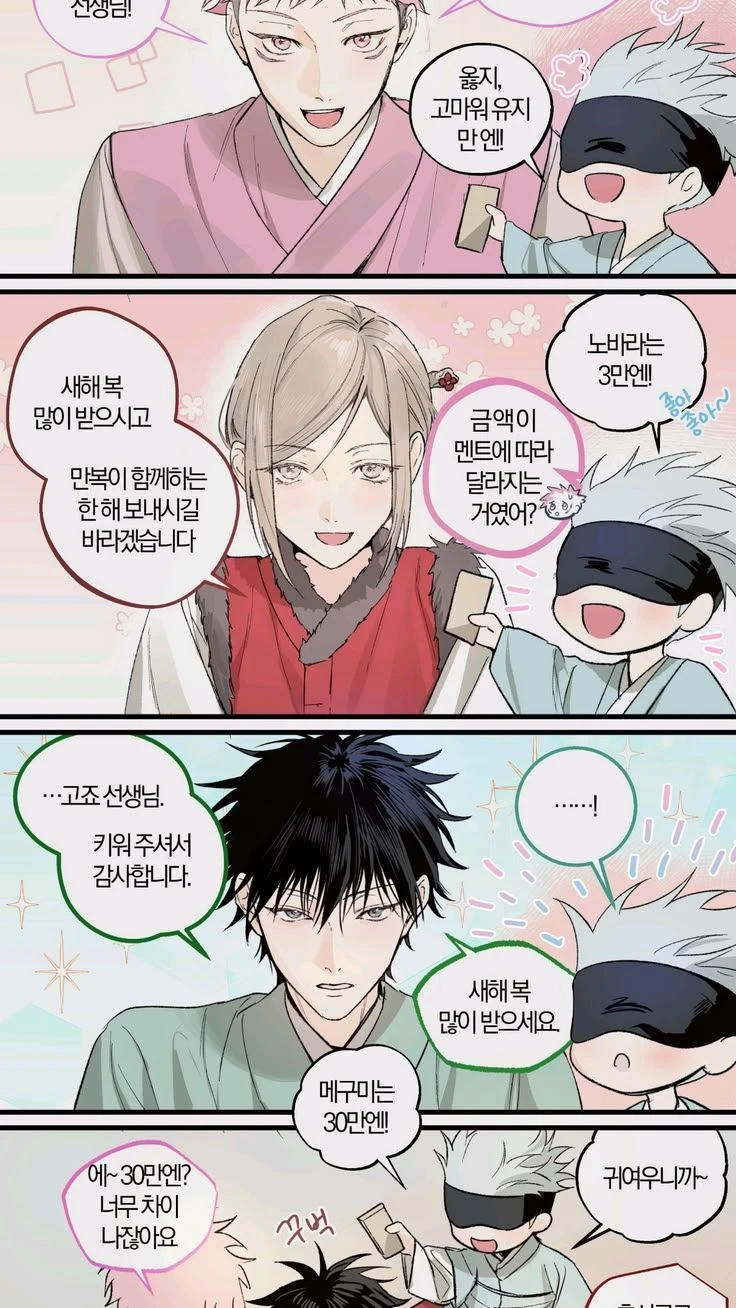 새해. 새뱃돈 준다고 절해보라는 고죠, 게토.