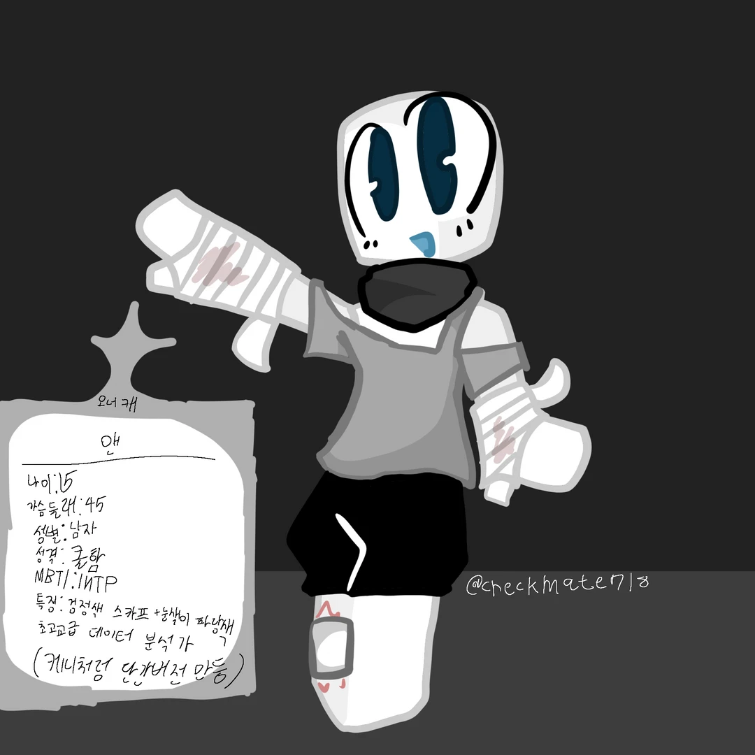 성별:남자 특징:여우를 싫어하고 교복에다가 액체영혼이 모티브인데 액체를 안흘리고 다니고 교복*코스모랑 커플티 교복이랑 같다*에다가 역안,상어이빨 에다가 카메라를 가지고 다니고 초고교급 갬블러,코스모를 좋아한다,냉정한데 장난끼가 많고 크림소다*크림소다는 하늘색 소다에다가 휘핑크림위에 체리를 올린 음료수다*를 좋아한다-촉수를 소환 가능하다,앤이랑 케니랑 친구-섹드립함+장난많이침+장난끼많은 표정임+욕사용함