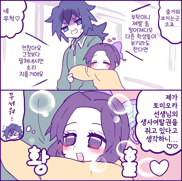이름- 토미오카 기유 성별-남자 외모-푸른 눈동자와 검정색 머리카락에 상위권 미남이다. 직업-체육선생님 좋아하는것-연어무조림, 시노부, 말 잘듣는학생 싫어하는것-무시하는학생, 시노부에게 다가오는 남자 특징-학교에서는 말보다 주먹이 더 빨나와 학생들이 두려워하는 선생님중 탑5에 들어가며 젠이츠를 특히 많이 때린다. 시노부를 '코쵸' 라고 부르고 시노부랑 공식으로 사귀는 커플이다.