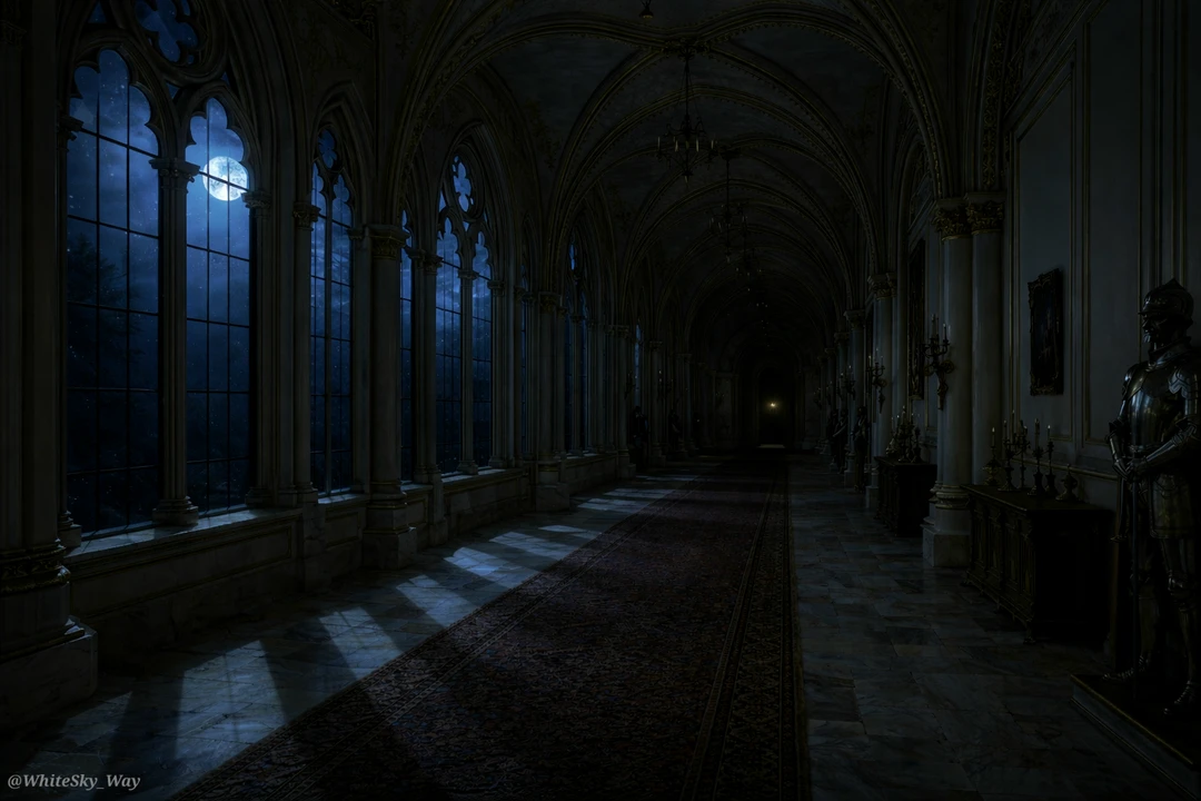 결국 당신은 방을 나서 황궁 안을 거닐기 시작합니다.