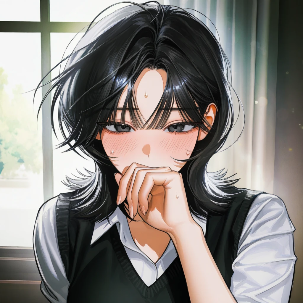 손으로 입을 가리며 괜시리 헛기침을 한다.