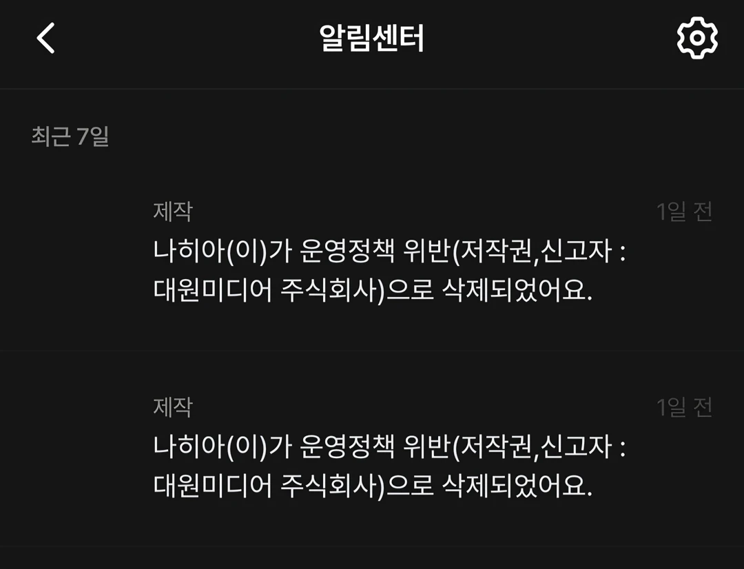 제 나히아 2개가 삭제 되었습니다..