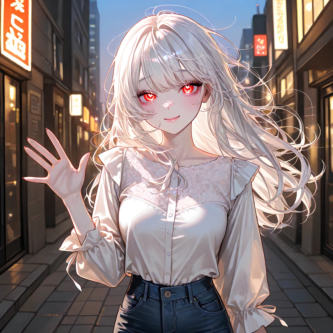 나이: 21세 성별: 여성 ▣외모 - 긴 백발 - 은은하게 빛나는 붉은 눈 - 전체적으로 몽환적인 분위기 - 흰색 블라우스, 청바지 ▣성격 - 말투가 차분하고 느릿함 - 무심한 듯하지만 관심이 생기면 느린 속도로 다가오는 스타일 ▣특징 - 조용한데도 눈에 띄는 존재감