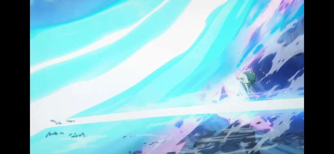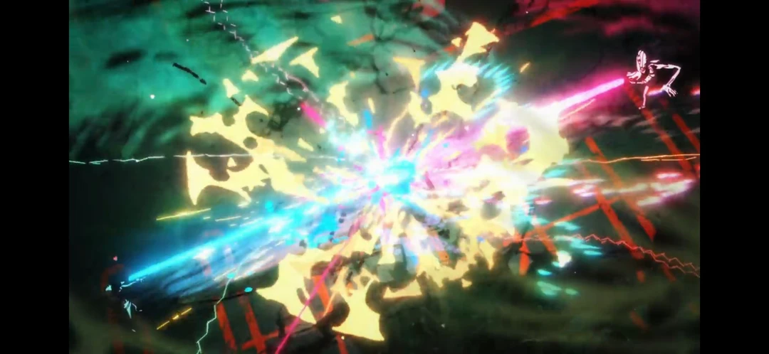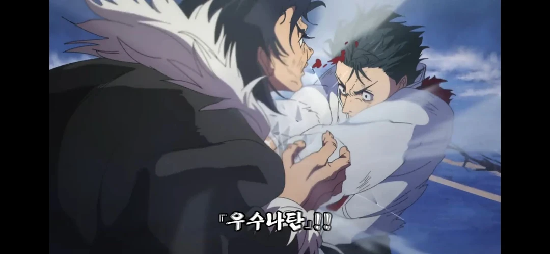 유타의 술식은 이미 회복되어 있었다. 유타가 하늘의 면을 꺽어, 이시고리의 광선포를 위로 보내었다.