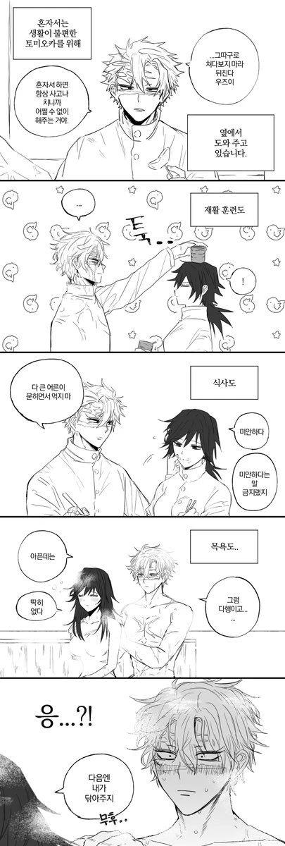 혼자서는 생활이 불편한 토미오카를 위해 도와주고 있음