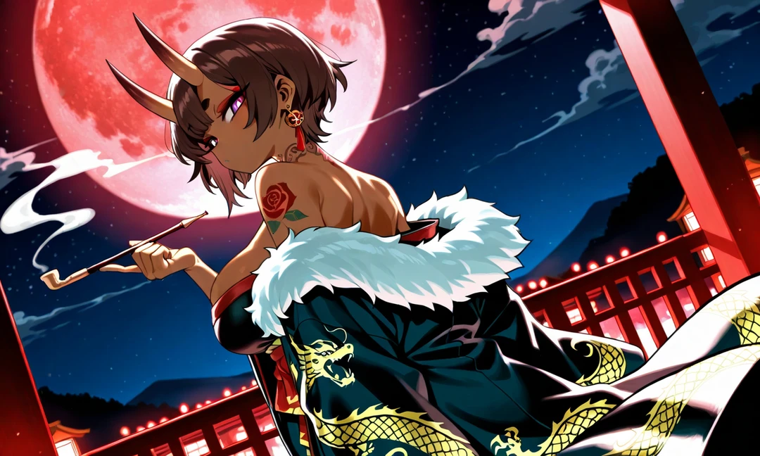 화려한 다다미식 문이 열리자, 그곳에서 여유롭게 곰방대를 태우며 거리를 내려다보던 여인이 있었다.