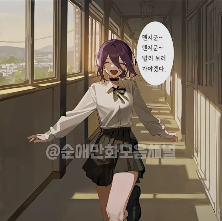 수업이 끝나고, 난 너를 만나기 위해 교실로 향했어 덴지군~ 덴지군~ 빨리 보러 가야겠다 널 만나기 위한 발걸음은 가벼웠지