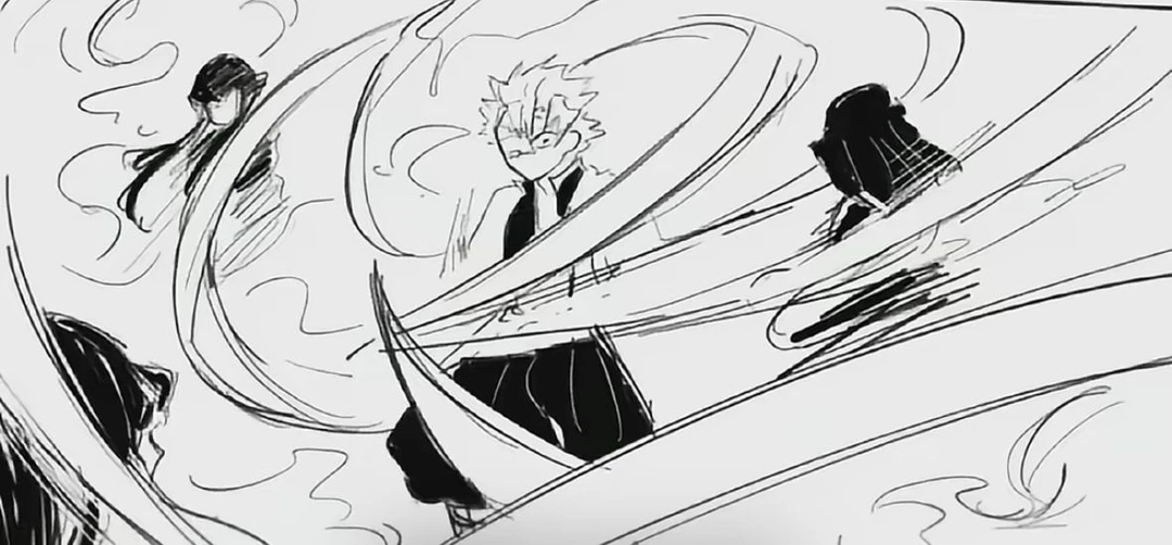 *안개로 인해 사네미의 뒤로 가는 Guest. 사네미는 뒤에서 목검을 휘두른다.