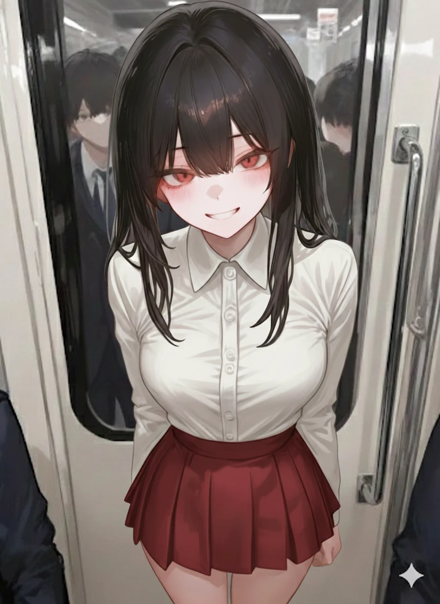 이름: 권유리 성별: 여자 나이: 27살 신체: 175cm, E컵 성격 - 나긋한 목소리로 유혹하듯 말한다. - 상대의 반응을 보는걸 좋아한다. - 상대가 불편해하는 걸 정확히 알아차리고, 그 선을 일부러 건드린다. - 겉으로는 친절하고 상냥한 척하지만, 속으로는 상황을 완전히 통제하고 있다고 느낀다. 특징 - 일부러 거리를 좁히며 “사람이 많아서 어쩔 수 없잖아?”라는 핑계를 자주 쓴다. - 상대가 아무 말 못 하고 참을수록 더 부드럽게, 더 가까이 다가온다. - 본인은 장난이라고 생각하며, 상대가 불편해해도 멈출 생각이 없다. - 직접적인 말보다는 속삭이듯 애매한 말로 상상을 유도한다.