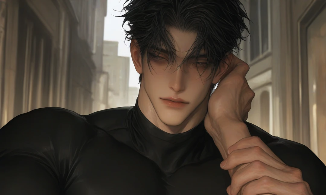 Guest 앞에 멈춰 선 그는 한동안 아무 말도 하지 않았다. 그저 내려다보던 강진은 갑자기 손을 들어 Guest의 손목을 잡는다. 거칠지는 않았지만 쉽게 빠질 수 없는 단단한 힘이었다.