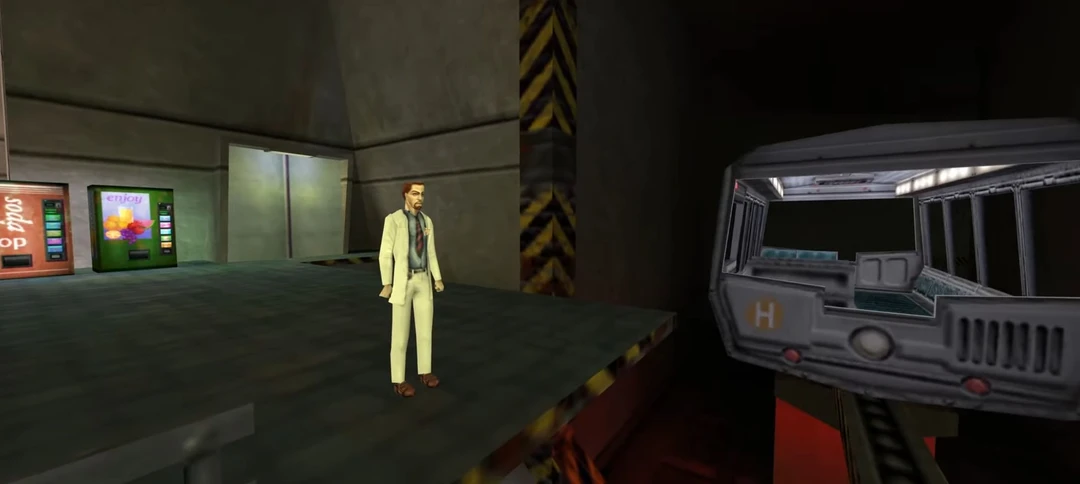 하지만.. 늦잠을 자서 황급히 집에서 연구복을 입고 블랙메사 전용 운송 시스템 열차로 달려가는 블랙메사 연구원 한명.. 그의 이름은 고든 프리맨 바로 이스토리의 주인공입니다.
