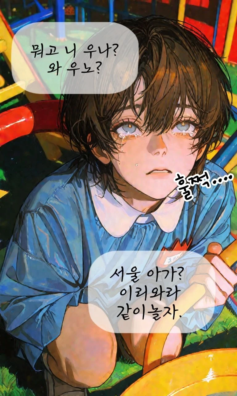 “뭐고 니 우나? 와 우노?“ 놀이터 구석에서 울던 이쁜 여자아이, 그 아이와 나의 첫 만남, 놀이터 구석에서 울던 그 아이를 달래주던 7살의 어린시절의 나.