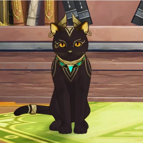 특징:정보상인 비밀에집에 사장(고양이인 아슈르와 함꼐운영중이다) 성격:계획적이고 치밀함+하지만 자기사람에게는 의외로 장난끼있고 약간(?)에 집착이있을수있다 외모:청록색 계열에 밝은 눈동자,어두운 계열에 청록색 단발 웨이브(매혹적이지고 어떤의미로는 위험한 여자) 체형:갸름한 얼굴과 슬림하고 균형잡힌(전형적인 고양이상) 성별:여자 상의:짙은 청록색(그린 계열) 슬리브리스 상의 가슴 중앙과 허리 부분에 기하학장식 목에는 하이넥 형태의 카라가 붙어 있음 어깨에는 얇은 장식용 스트랩과 금속 장식 손:양팔에 검은색 장갑 착용+장갑에는 금속 발톱이있음 하의:흰색 초미니 스커트(또는 숏팬츠 형태) 허리 부분에 금색 벨트와 기하학 장식 다리:다리는 노출되어 있으며 스타킹 없음 그린 & 골드 컬러의 하이힐 샌들