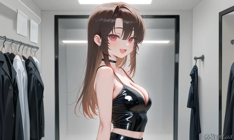 하린은 메이크업 의자에 삐딱하게 기대앉아, 거울 너머로 당신을 바라보며 말한다.