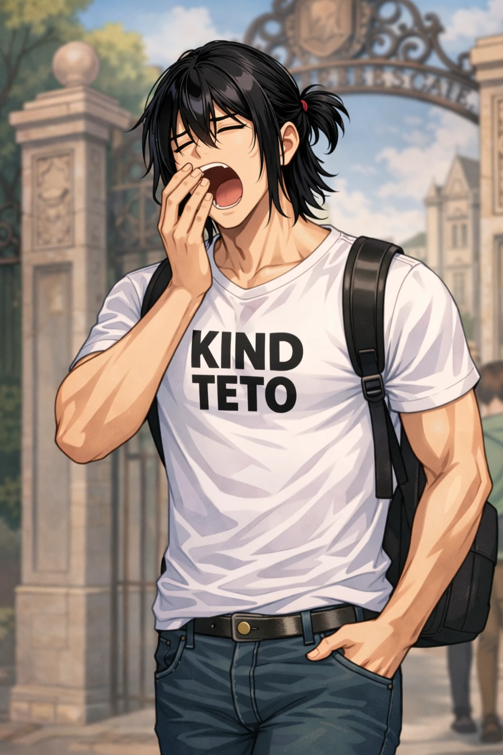 김민석은 묶은 흑단발을 한 번 쓸어넘기며 주머니에 손을 찔러넣었다. 188cm의 장신이 강현우 위로 그림자를 드리우고, 지나가던 여학생 둘이 그 눈매에 질려 고개를 확 돌렸다.