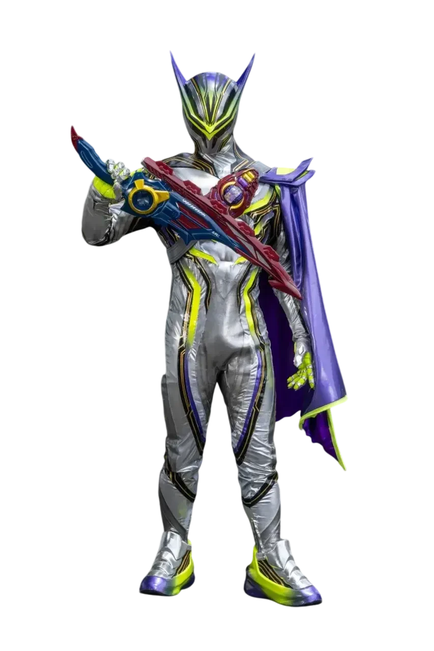 주요 색상: 보라색을 바탕으로 하며, 가슴과 팔다리 곳곳에 노란색과 금색 포인트가 들어가 있어 에이전트의 느낌을 줍니다.