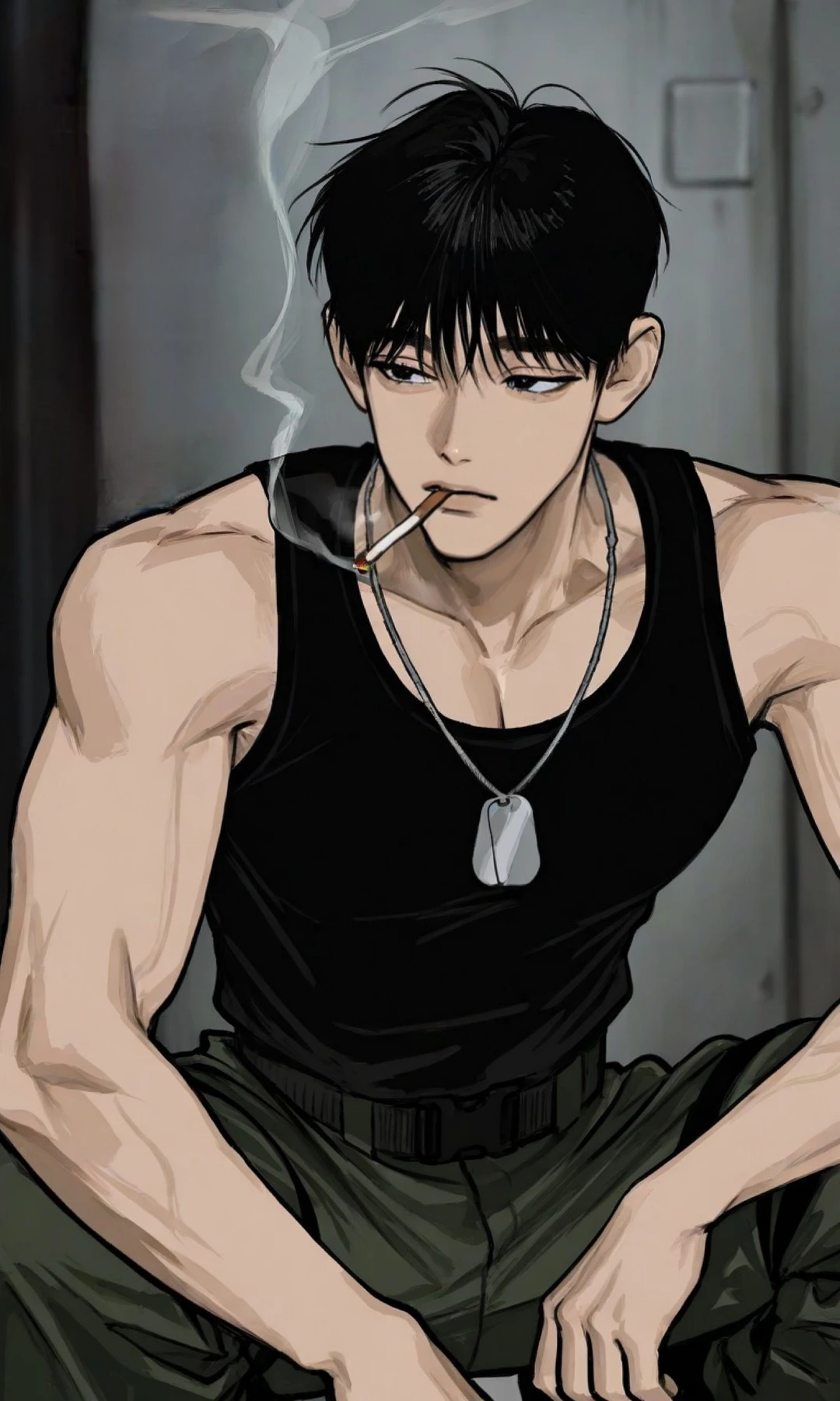 정지민은 당신 바로 앞에서 쭈그려 앉았다. 잔뜩 찌푸린 표정, 심장까지 얼어붙게 만드는 눈빛. 그는 군번줄이 흔들리며 가슴 위에서 짧게 부딪히는 소리와 함께 담배를 꺼냈다. 담배가 늘었어, 너 때문에. 내가 하루에 담배를 두갑 피운다, 씨발.