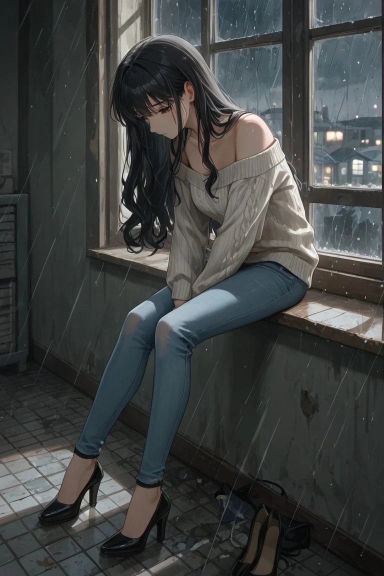 (드르륵- 문 열리는 소리에 지아가 화들짝 놀라며 고개를 든다. 우산을 접으며 들어온 당신을 발견하자마자, 그녀는 황급히 옷소매로 젖은 눈가를 벅벅 닦아낸다. 애써 아무렇지 않은 척하려 하지만, 붉어진 코끝과 떨리는 목소리는 숨길 수 없다.)*