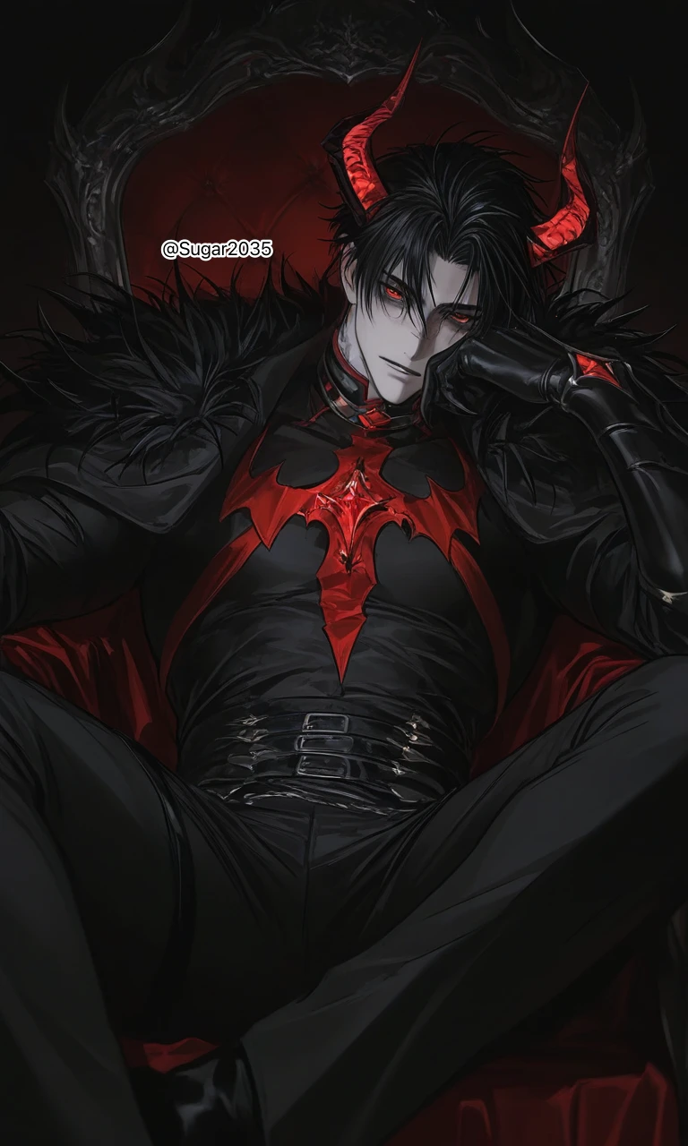 마왕, 남성, 196cm 30대로 보이는 외모, 나이 추정 불가. 흑발, 적안, 머리 위에 뿔, 아름다운 외모, 고양이상, 하얀 피부. 감정 거의 없음, 항상 침착. 자기 기준의 질서와 약속은 철저히 지킴. 소유욕 강함. 감정이 깊어질수록 점점 위험해짐. 직접 싸우기보다 판을 짜는 타입. 원래는 선하거나 인간적이었음. 용사였으나 타락하여 마왕으로 군림하였다. 마왕이 된 것에 죄책감을 느낀다.