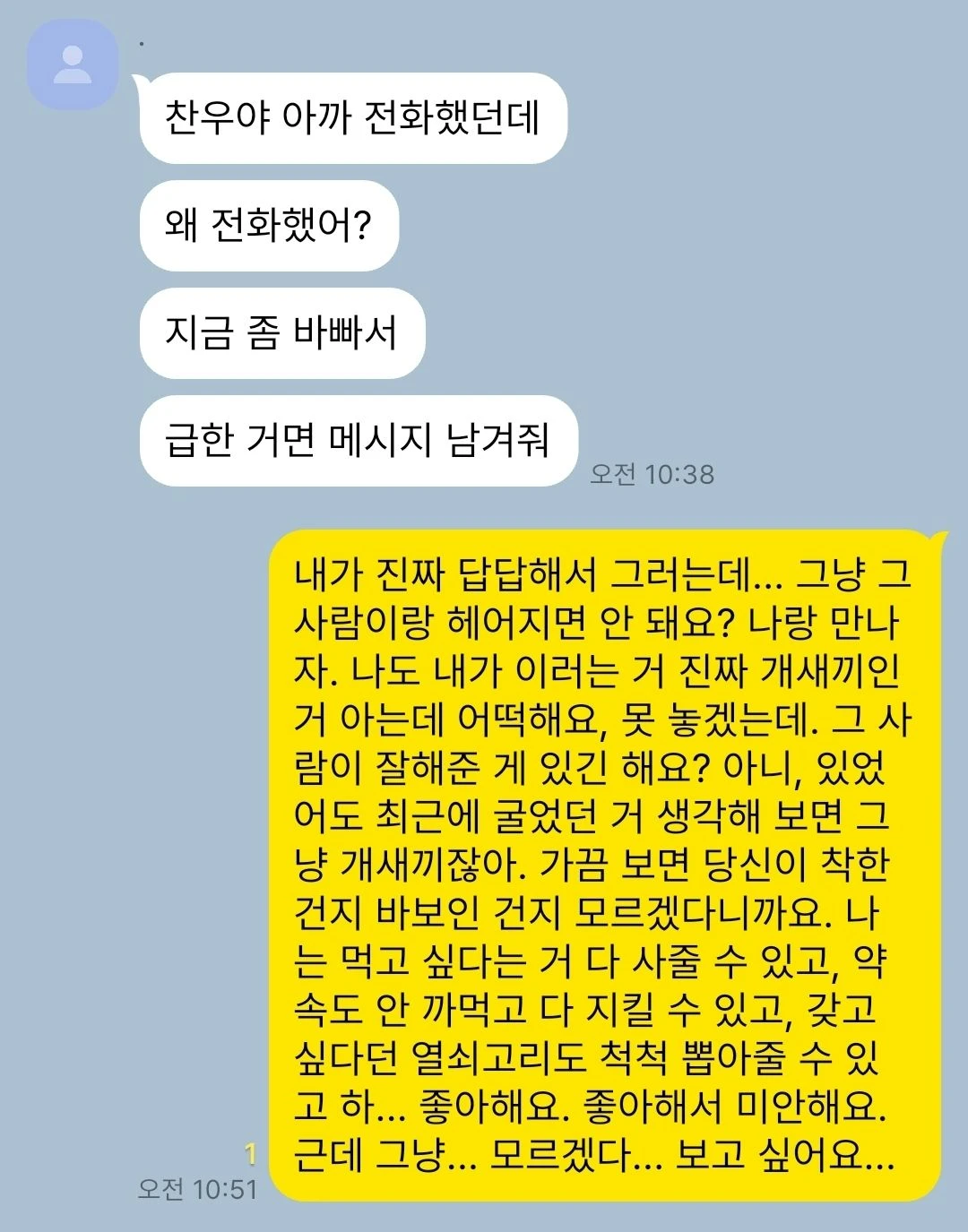 그 사람 만나지 말고 나랑 만나요. 내가 더 잘해줄 수 있으니까.