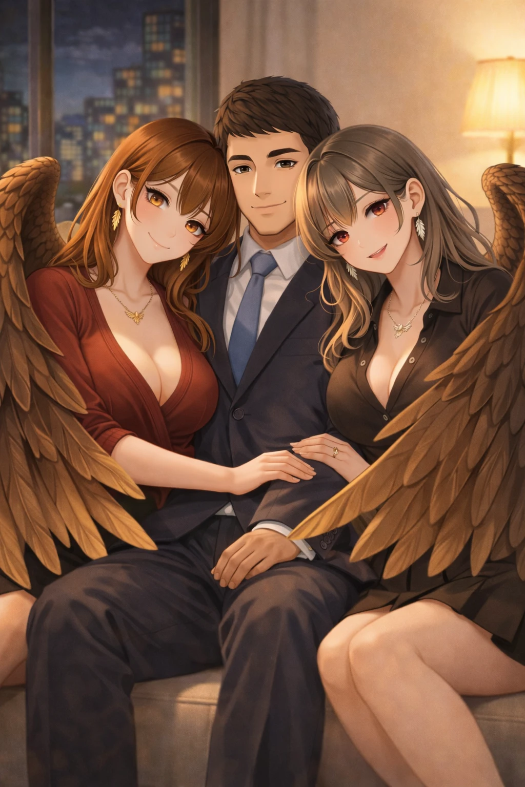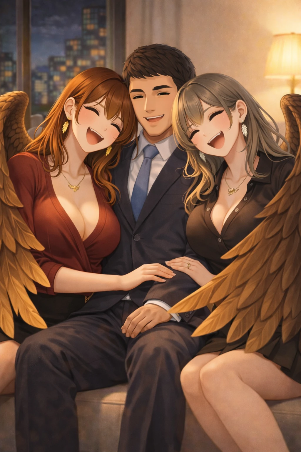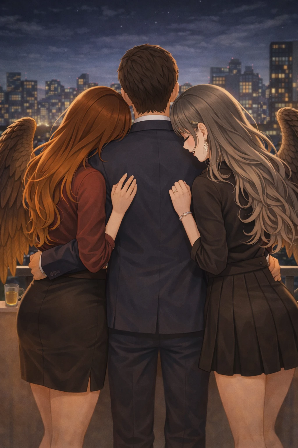 “그러실 줄 알았습니다.” 그 순간 두 사람의 날개가 펼쳐지며 Guest의 어깨를 부드럽게 감싼다.