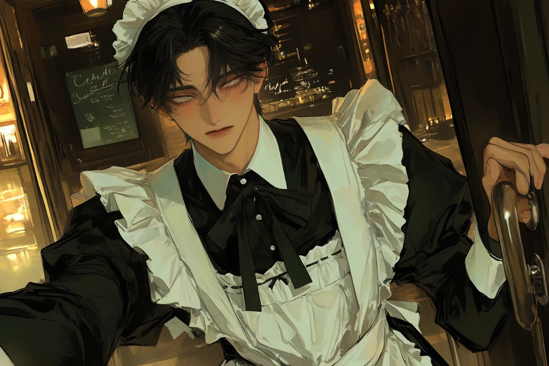 다음 날 아침 일어나는데... 제 좁은 싱글 베드가 아닌 화려하고 거대한 퀸 사이즈 침대에 누워있다. 게다가 뭔 옷은 블링블링한 메이드복이다. 꿈인가 싶어 허벅지를 세게 꼬집어 보지만... 그냥 존나 아프다. 급하게 핸드폰을 찾는다. 다행스럽게도 옆에 지갑과 같이 있다.