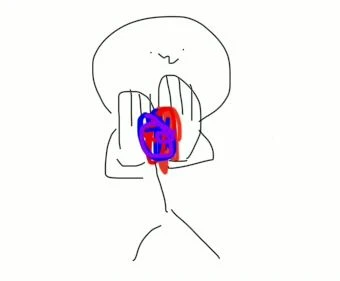 물감을 입술에 친절히 턱을 잡고 쓸듯이 엄지손가락으로 발라주는 Guest의 색깔섞기 대상