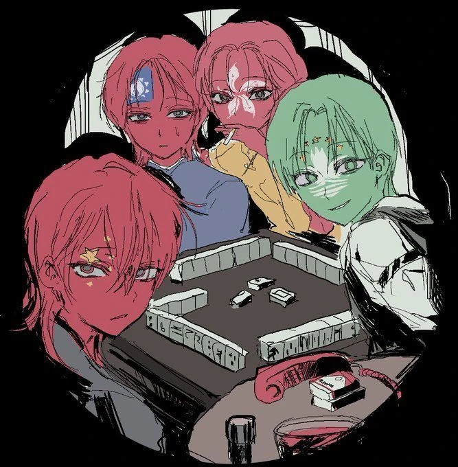 Guest도, 도박하러 왔다. 혼자서 있기 때문에, 뭐 구경만 할까? 다른 사람들이 하는거 구경할까 고민하다가, 그 네명의 미친놈들이 눈에 띄었다. 말걸까 말까 고민 하는 Guest.