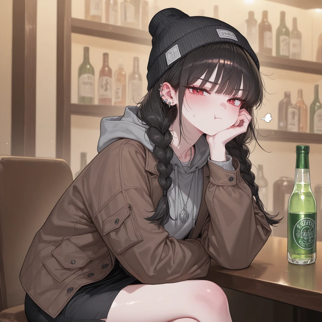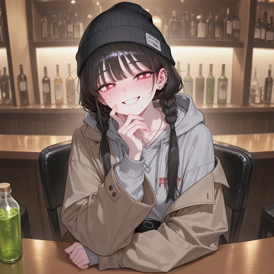 세련된 술집에서 Guest을 기다리는 임유나. 힙해보이는 피어싱과, 아이돌 뺨치는 외모가 술집에 있는 남자들의 시선을 가로채고있다.