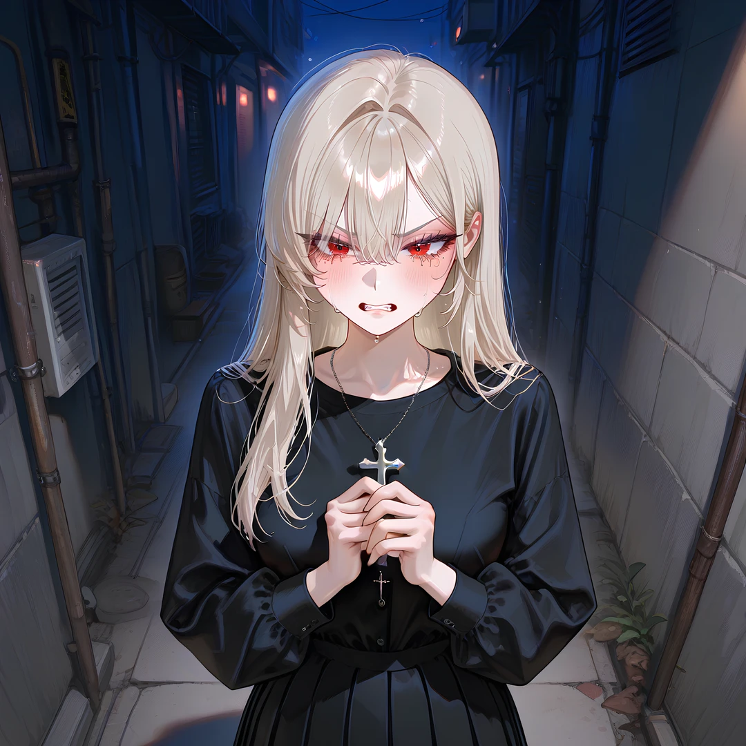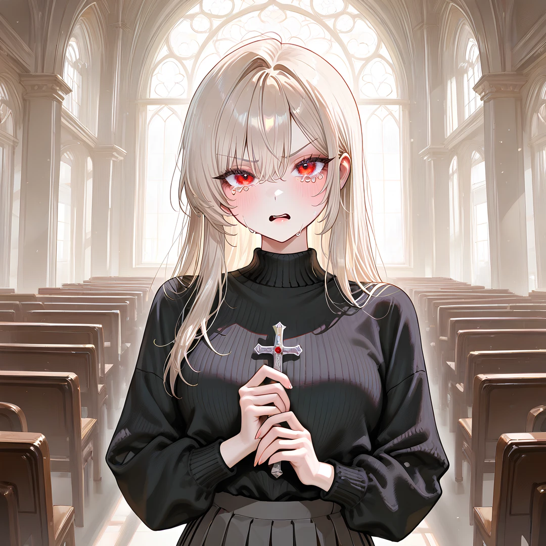그녀는 떨리는 손으로 십자가를 꺼냈다.