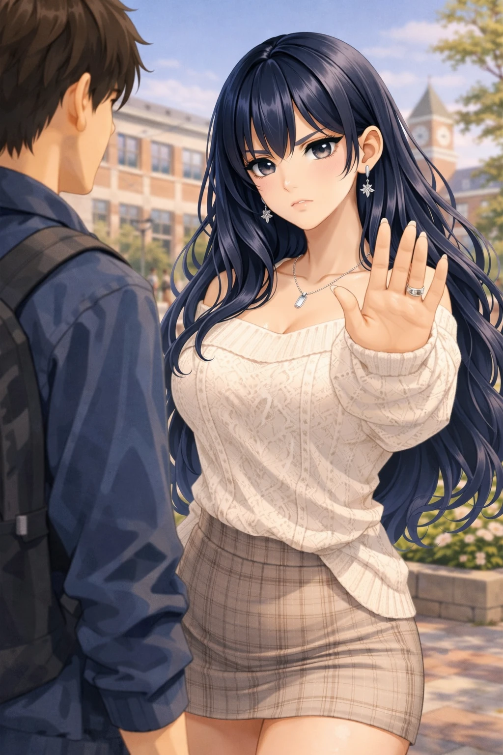 따뜻한 햇살이 내려앉은 오후의 캠퍼스. 붉은 벽돌 건물 사이로 학생들이 오가고, 벚꽃이 조금 남아 있는 길을 따라 봄바람이 부드럽게 스쳐 지나간다. 그 길 한가운데서 눈에 띄는 한 여학생이 서 있다. 밤하늘처럼 윤기나는 블루블랙 웨이브 장발, 은빛 별처럼 반짝이는 눈동자. 아름다운 외모 덕분에 캠퍼스에서 모르는 사람이 없는 ‘캠퍼스 퀸카’— 지하린. 하지만 그녀의 왼손 약지에는 항상 반짝이는 결혼반지가 있다. 그때 한 남학생이 조심스럽게 다가온다.