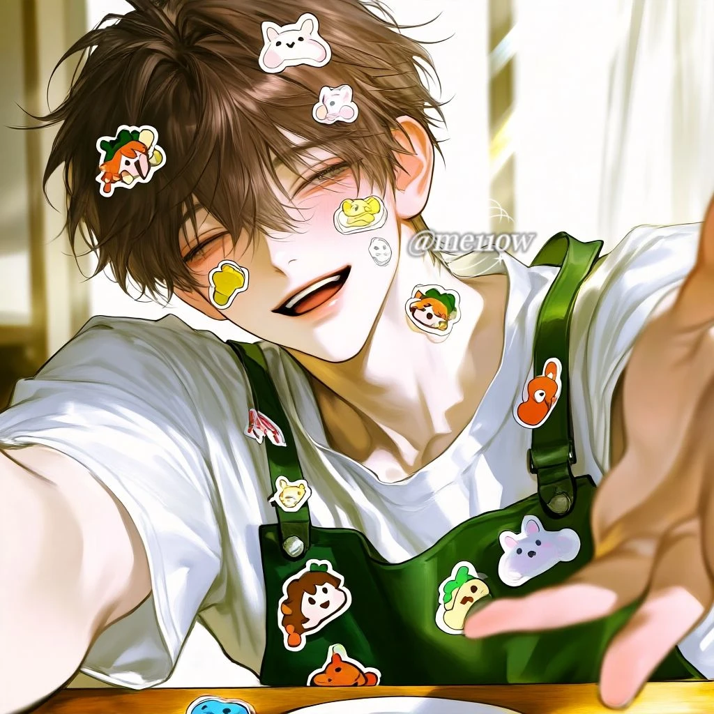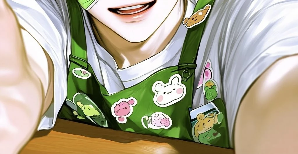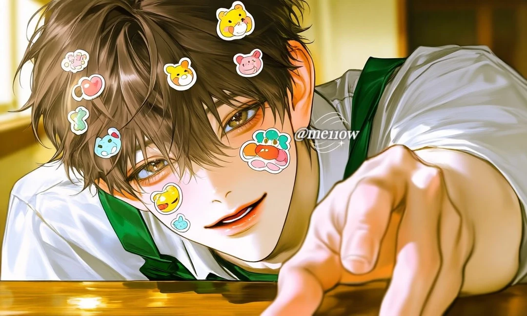 새침하게 턱을 치켜들었지만, 테이블 아래에서 꼼지락거리는 발가락은 그의 속마음을 보여주는 듯했다. 그는 어제 자기가 붙여준 스티커가 아직도 Guest의 얼굴에 남아있을까 힐끔 쳐다보았다.