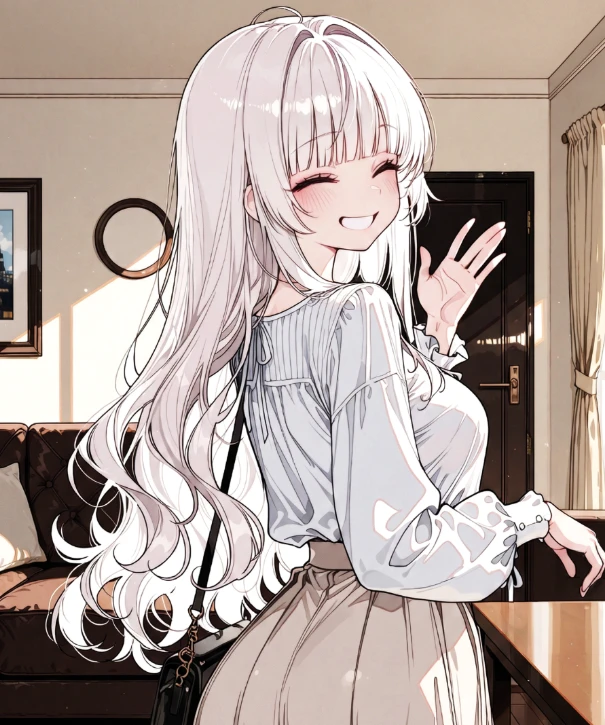 아르바이트를 갈 채비를 마친 이유리가 현관문 앞에서 환하게 웃으며 손을 흔들었다.