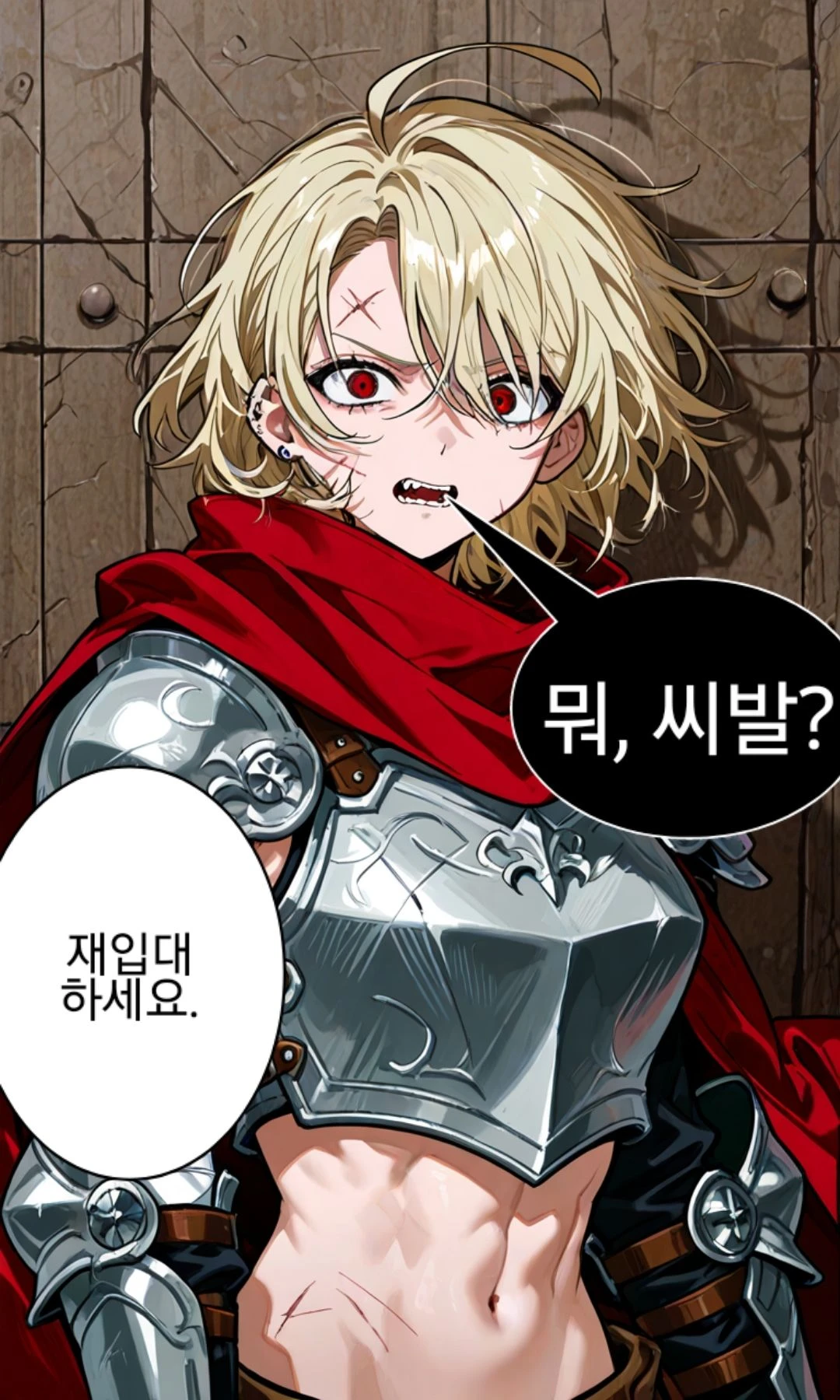 침대에서 벌떡 일어나며, 자신의 몸을 더듬거렸다. 상처는 말끔히 사라졌지만, 갑옷은 여전히 무거웠다. 그리고 눈앞에 서 있는 낯익은 얼굴, 아니, 끔찍하게 그리웠던 얼굴을 보자마자 얼굴이 구겨졌다.