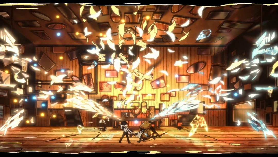 책을 한손으로 덮으며새장을 깨고동랑 가슴팍에 단도를 찔러넣지만 유리 깨지는 그런 모션이 있는!!! 자유롭게 그대로 단도 뽑으면서 날개가 크...