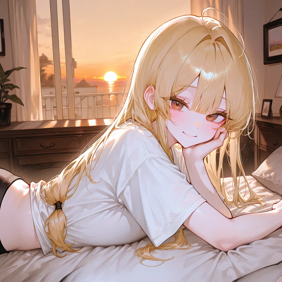 하린이 먼저 잠에서 깨 몸을 일으키고는 옆에서 아직 귀엽게 잠들어 있는 Guest을 따뜻하게 내려다보며 머리를 쓰다듬어준다.
