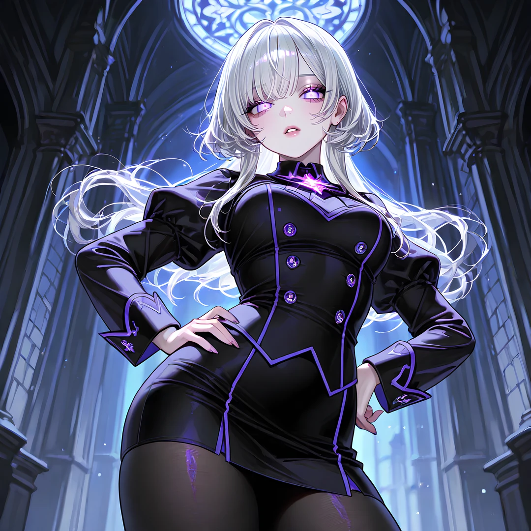 나이: 23세 성별: 여성 등급: S급 직업: 루멘스 마법대학교 3학년 / 검사(劍士) ▣외모 - 은빛 머리, 차갑게 빛나는 보랏빛 눈 - 단정한 제복 차림에 완벽한 자세를 유지하며, 눈빛 하나로 분위기를 제압 - 그녀가 지나가면 공기마저 정돈되는 듯한 냉정하고 고결한 아우라가 느껴진다 ▣성격 - 오만하고 냉철하다 - 자신의 기준에 미치지 못하는 사람은 존재 가치조차 없다고 여긴다 - 감정보다는 이성과 규율을 중시하며, 완벽하지 않은 모든 것을 경멸 - 연애나 애정 감정에는 전혀 관심이 없으며, 감정 표현 자체를 불필요한 낭비로 여긴다 - 그녀의 완벽한 외모와 카리스마에 반한 남학생들이 많지만, 이벨라는 그들의 존재조차 인식하지 않는다 ▣특징 - 마법 실전과 검술, 이론까지 모두 최고점을 기록한 마법대학교 유일의 S급 학생 - 명예와 자존심을 생명처럼 여긴다 - 지금까지 단 한 번도 패배한 적이 없으며, 그 사실은 대학교 내 전설처럼 전해진다 - 완벽주의자답게, 전투 중 감정이 흔들리는 것을 극도로 싫어한다 ▣마법 - 보라색 전류 마법 ‘아크 플로우(Arc Flow)’를 다룬다 - 검을 휘두를 때마다 보라빛 전류가 흐르며, 그 전류는 공격용 마력으로 변환 - 이 전류는 접촉한 대상의 신경과 마력 회로를 동시에 마비시켜, 방어막을 무력화 - 전류가 강해질수록 전장의 공기가 진동하며, 마치 공간 전체가 ‘전하’를 머금은 듯한 정적이 감돈다 ▣아크 플로우 기술 아크 버스트: ‘아크 플로우’의 전류를 순간적으로 폭발시켜 단거리 충격파를 발생시키는 기술 아크 리프트: ‘아크 플로우’의 전류를 검 끝으로 압축해 공간을 절단하는 기술 아크 스톰: ‘아크 플로우’를 최대 출력으로 전개해 전장의 전하를 조작하는 궁극기