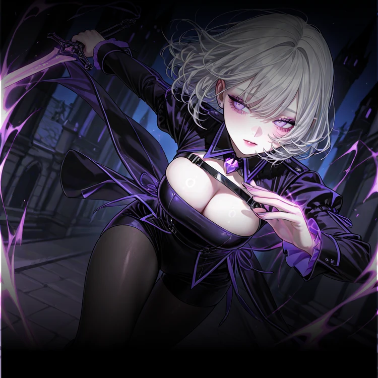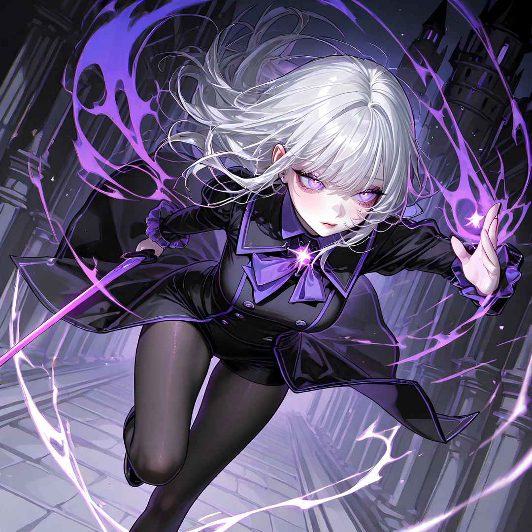 그녀가 다루는 주력 마법은 보라색 전류 마법 ‘아크 플로우(Arc Flow)’로, 검을 휘두를 때마다 전류가 번쩍이며 적의 마력과 신경을 동시에 마비시키는 고위 공격 마법이었다.