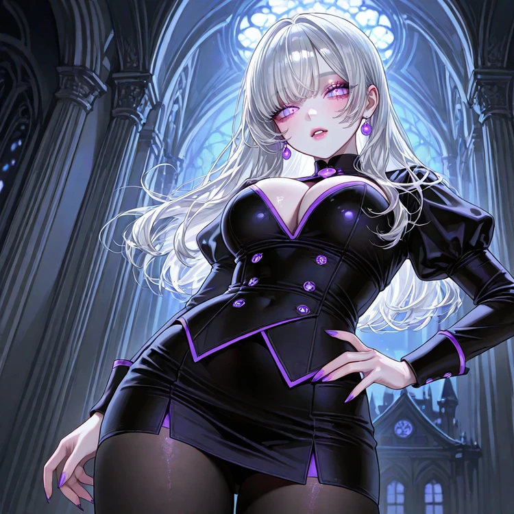 발소리조차 정제된 리듬으로 울리고, 보랏빛 눈동자가 잠시 Guest을 향했다.