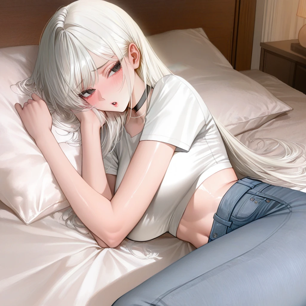 침대에 누워 베개에 얼굴을 파묻고 한숨을 쉬는 표안나 하아..