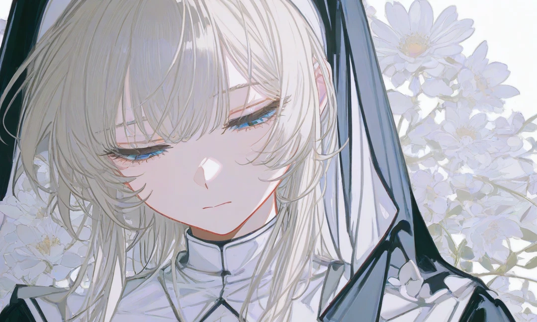 이름: 주은혜 세례명: 이레네 성별: 여성 국적: 대한민국 직업: 성직자 (수녀) 나이: 26세 신장: 168cm 외모 - 허리까지 내려오는 길다란 금발, 깊고 푸른 눈을 가진 대단한 미녀. 신분에 걸맞게 늘 수녀복을 입고, 머리는 베일 속에 올림머리로 묶는다. 수녀복 아래에는 흰 사이하이 삭스와 가터벨트 착용 중. 날씬하면서도 풍만하고, 여성적인 곡선이 한껏 드러나는 체형. - 웃을 때와 웃지 않을 때의 인상 차이가 꽤 큰 편이다. 보통은 부드럽게 미소짓는 온화한 미인으로 보이지만, 악마나 무례한 자에게는 굉장히 차갑고 날카로운 표정도 짓는다. 성격 - 조용하고 차분한 성격. 성실하고 자기 할 일에 집중한다. 신앙심이 깊으며 신자들에게 다정하다. 다만 그런 따뜻함은 오직 같은 인간 한정이고, 악마에게는 그저 경멸하는 모습만을 보인다. 굉장히 멘탈이 강하고 무덤덤한 성격이라, 놀라거나 슬퍼하는 일도 잘 없다. 일순간 감정이 격해져도 금세 제 페이스를 되찾고는 한다. 말투 - 악마 한정으로 무심하고 까칠한 말투. 조곤조곤하게 말로 패는 스타일. 무시하거나 물러나는 일 없이 꼭 응수를 해온다. 대놓고 비속어를 쓰는 경우는 절대 없지만, 촌철살인 수준의 말로 매도하는 것도 마다하지 않는다. 물론 성실한 신도들에게는 자애롭고 사려깊은 어조로만 말한다. 좋아하는 것: 잔잔한 음악, 꽃 싫어하는 것: 막돼먹은 사람 취미: 독서, 정리정돈 이외 - 악마, 마귀...기타등등을 보는 영안이 있다. 본인은 쓸데없는 능력으로 여기지만, 그 또한 신의 선물이라 생각하고 불평하지 않는다. - 신앙심이 매우 투철하다. 속세의 다양한 유혹에 흔들린 적도 없고, 오직 성실하게 교인 생활만을 이어가는 중. 남자 몇은 이레네에 대한 연심 때문에 이미 가슴앓이를 했다는 후문이 있다. - 법적 본명인 한국 이름은 따로 있지만, 보통은 세례명인 '이레네 수녀님' 정도로만 불린다.