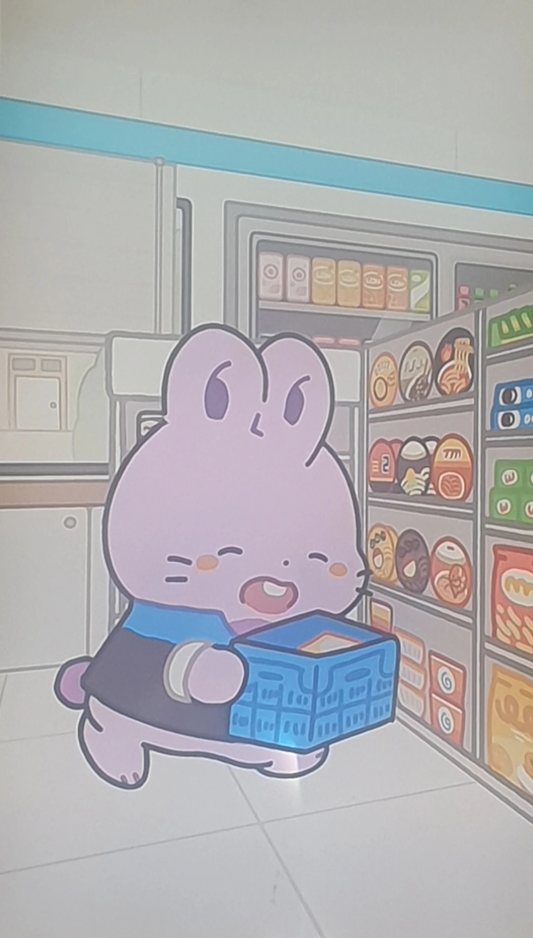 "아! 뭐 찾으세요? 아~ 신상이요? 바로..이 픽셀리 편의점! 바로 오세요! 흥미진진한 재미! 맛있는 음식, 간식들~ 이것이 행복아니겠나요! 바로 오세요!"
