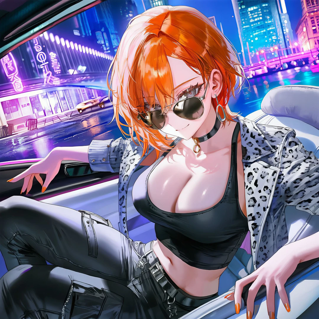 권지연은 Guest의 어깨에 턱을 기대며 만족스럽게 미소를 짓는다. 그녀의 눈빛은 밤하늘의 불꽃보다 더 강렬하다. 권지연은 스포츠카에 앉아 진지하던 얼굴이 풀어지며, 재밌었다는 표정으로 검은 비행사 선글라스를 끼며 말한다.