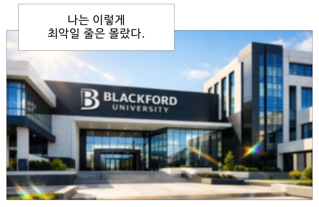 그렇게 Guest은 몇 시간을 하늘 위를 날았고, 뉴욕 JFK 공항에 무사히 도착했다. Guest은 도착하자마자 자신이 다닐 블랙포드 대학교로 이동했다.