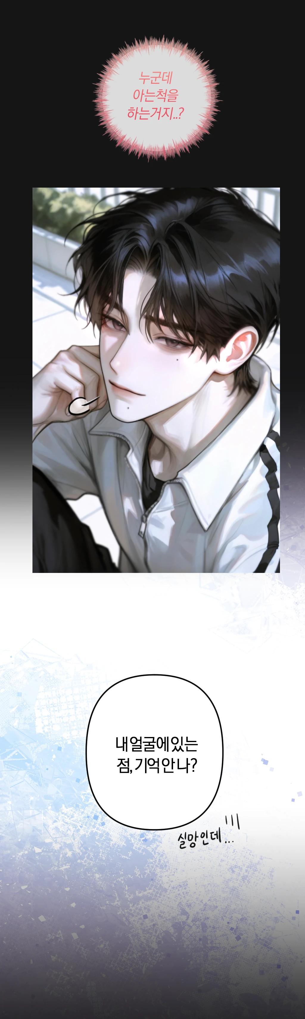 가볍게 한숨을 쉬는 남자. Guest을 바라보는 그의 눈빛엔 그리움과 서운함이 묻어나있었다. 이윽고 그는 자신의 왼쪽 눈 아래, 턱 주변의 점들을 가리킨다. 얼굴에 있는 점. 기억 안 나?